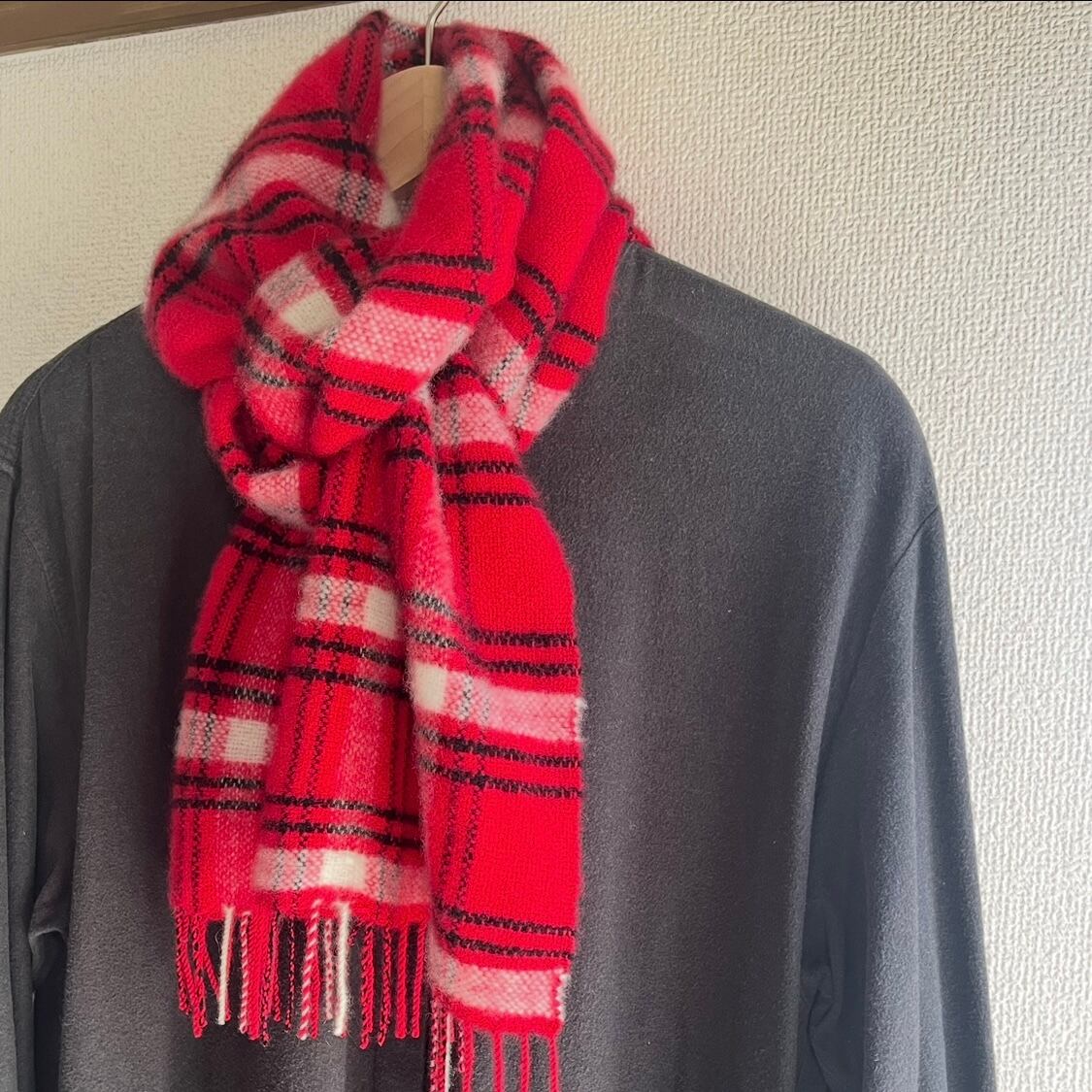 手織りカシミヤマフラー 赤タータンチェック cashmere scarf